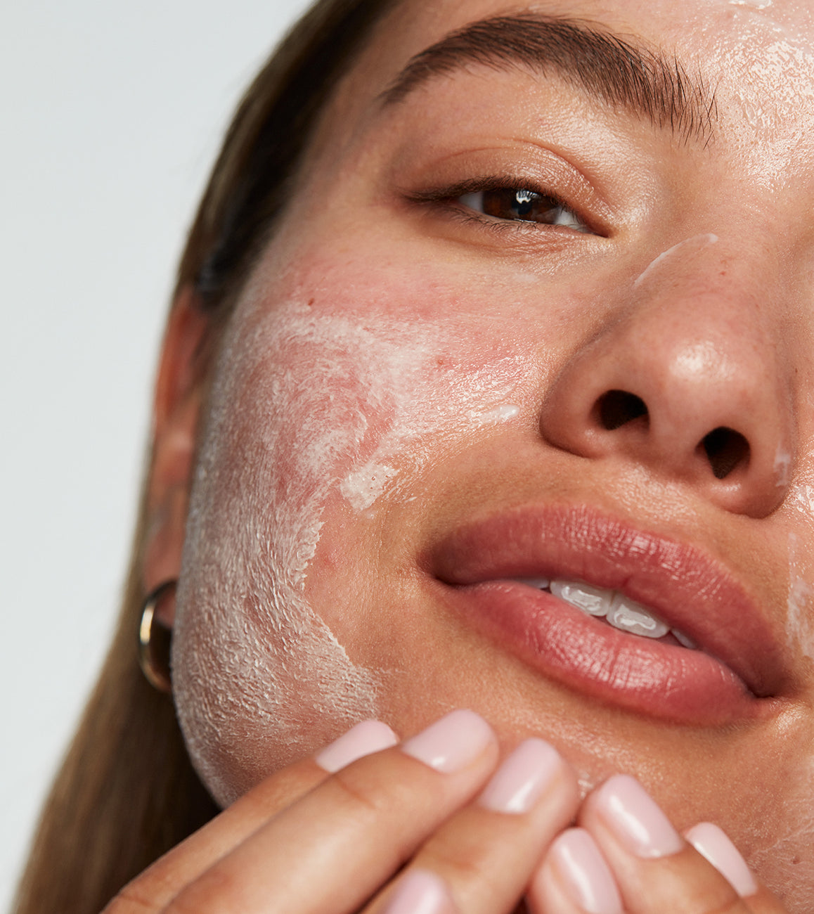 - Apply ExfoliKate in T-Zone + Goat Milk on cheeks.